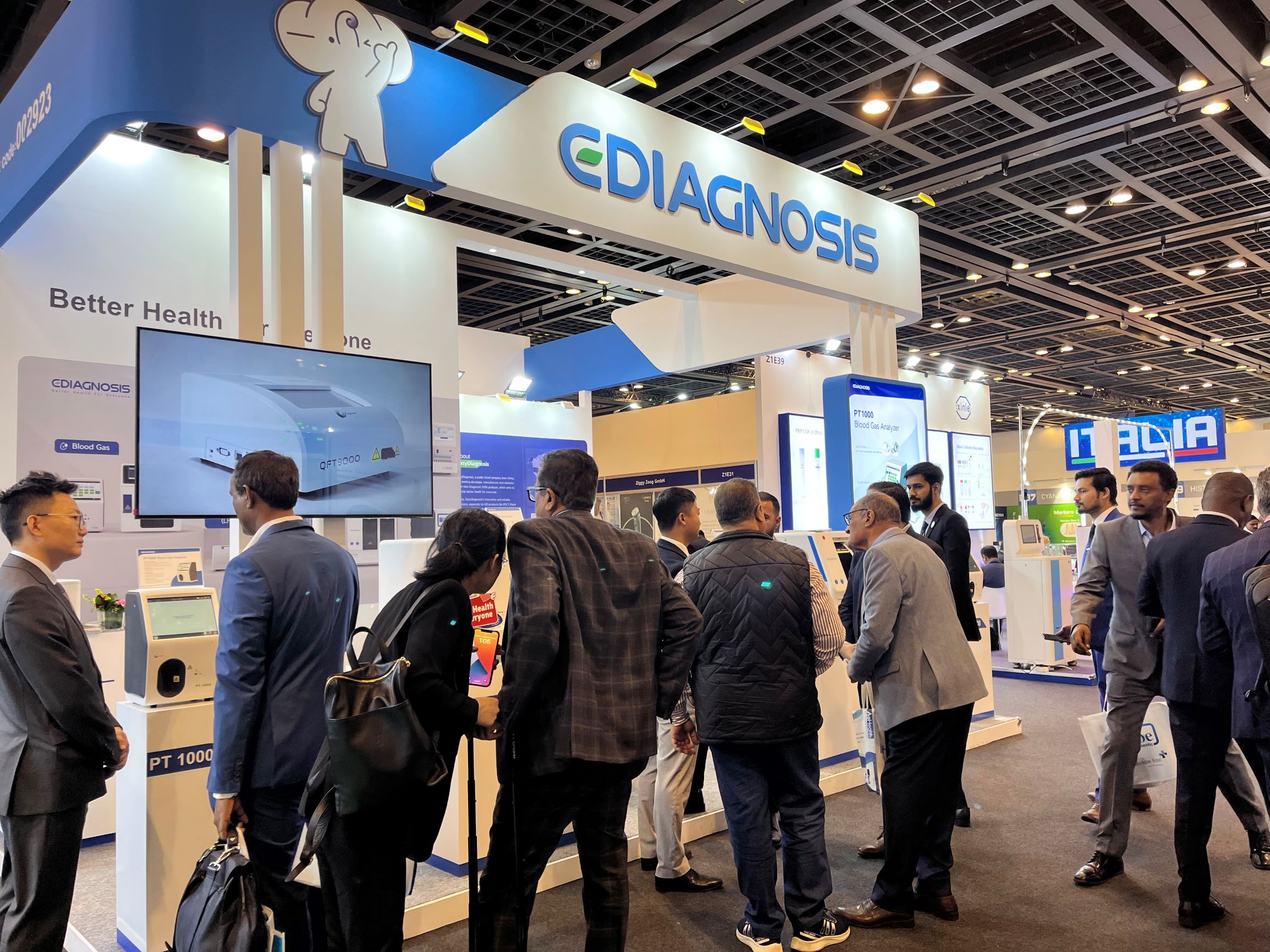 作為Medlab Middle East的“?”,明德生物再度盛裝亮相Zaabeel 館。今年以科技感十足的明小象IP形象為全新視覺元素,一開展便吸引了眾多參觀者的目光。