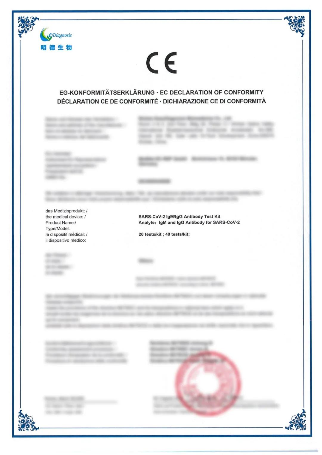 明德生物6項產(chǎn)品獲得CE準入,可在全球多個國家和地區(qū)進行銷售,將為全球疫情防控工作提供有效檢測工具。