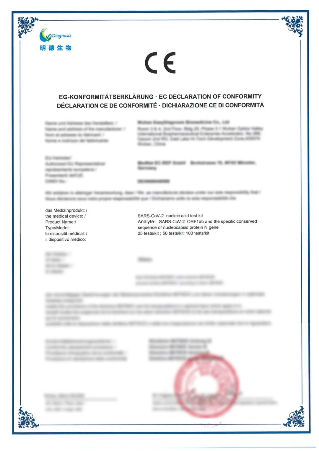 3月13日,武漢明德生物科技股份有限公司新型冠狀病毒核酸檢測試劑盒、核酸提取試劑、新型冠狀病毒IgM/IgG抗體檢測試劑盒(膠體金法)、血氣分析儀、血氣檢測試劑盒、高敏C反應蛋白(hs-CRP)檢測試劑盒共6個產(chǎn)品獲得歐盟CE準入,擁有進入歐盟市場資格。