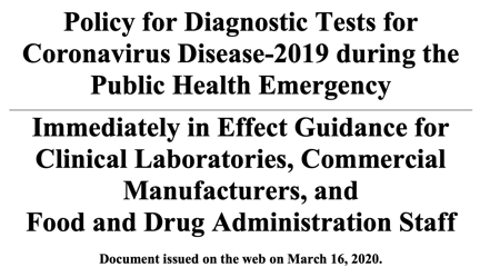 北京時(shí)間3月17日夜,F(xiàn)DA緊急出臺最新新冠病毒檢測指導(dǎo)政策 【Policy for Diagnostic Tests for Coronavirus Disease-2019 during the Public Health Emergency】