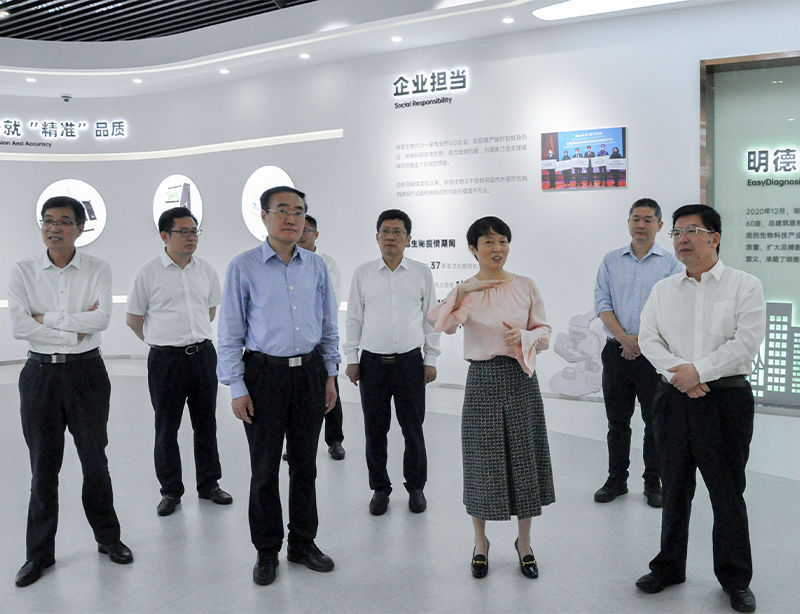 陳莉莉博士向陳平書記一行介紹了明德生物發(fā)展規(guī)劃、科技創(chuàng)新成果以及智慧診斷整體解決方案的市場應用情況,期待與棗莊市高新區(qū)的合作為明德生物的版圖增添新的活力。陳平書記指出,明德生物作為高新技術企業(yè),產品技術領先,發(fā)展?jié)摿薮,具有高度社會責任感,對行業(yè)發(fā)展帶來了積極影響。棗莊市區(qū)位優(yōu)勢明顯,醫(yī)療衛(wèi)生基礎較好,歡迎明德生物到棗莊發(fā)展,以創(chuàng)新優(yōu)質的診斷產品、精準高效的第三方檢測服務以及分秒必爭的急危重癥整體解決方案與棗莊智慧城市建設相結合,服務民生,為群眾提供優(yōu)質、高效、便捷的智慧醫(yī)療服務。