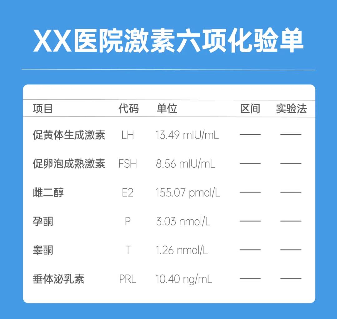 性激素是女性常規(guī)的生殖系統(tǒng)檢查。通過(guò)測(cè)定性激素水平來(lái)了解女性內(nèi)分泌功能和輔助診斷內(nèi)分泌失調(diào)相關(guān)的疾病。常用的性激素六項(xiàng)即促卵泡生長(zhǎng)激素(FSH)、促黃體生成激素(LH)、雌二醇(E2)、孕酮(P)、睪酮(T)、催乳激素(PRL)。