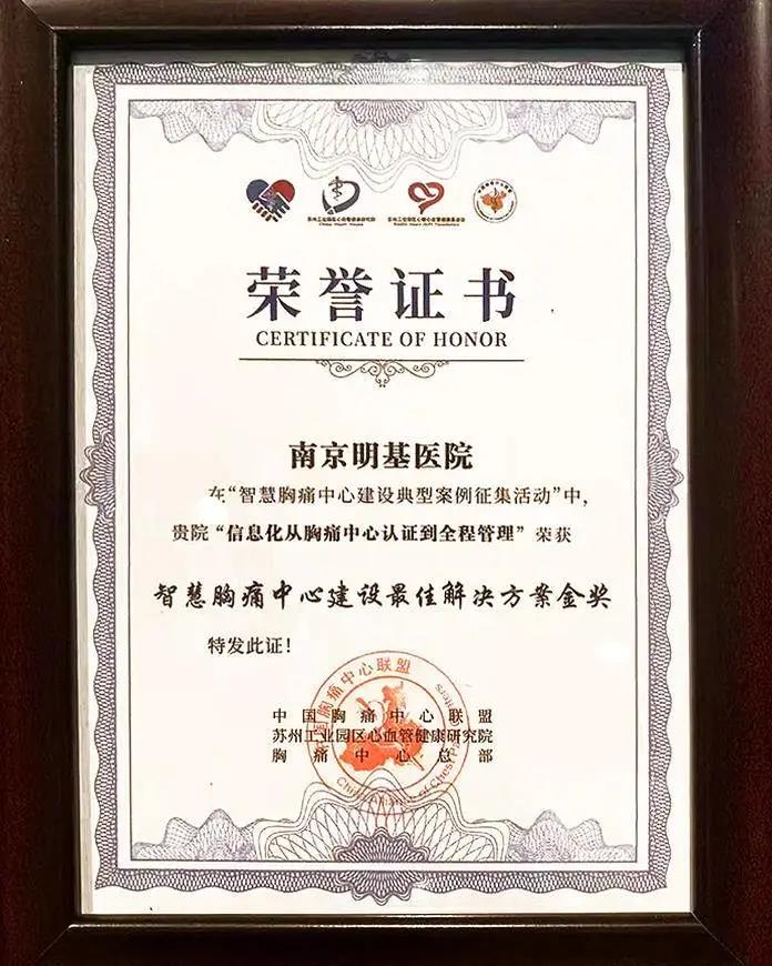智慧胸痛中心建設(shè)最佳解決方案金獎(jiǎng)——